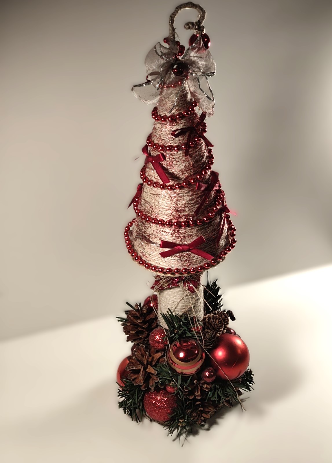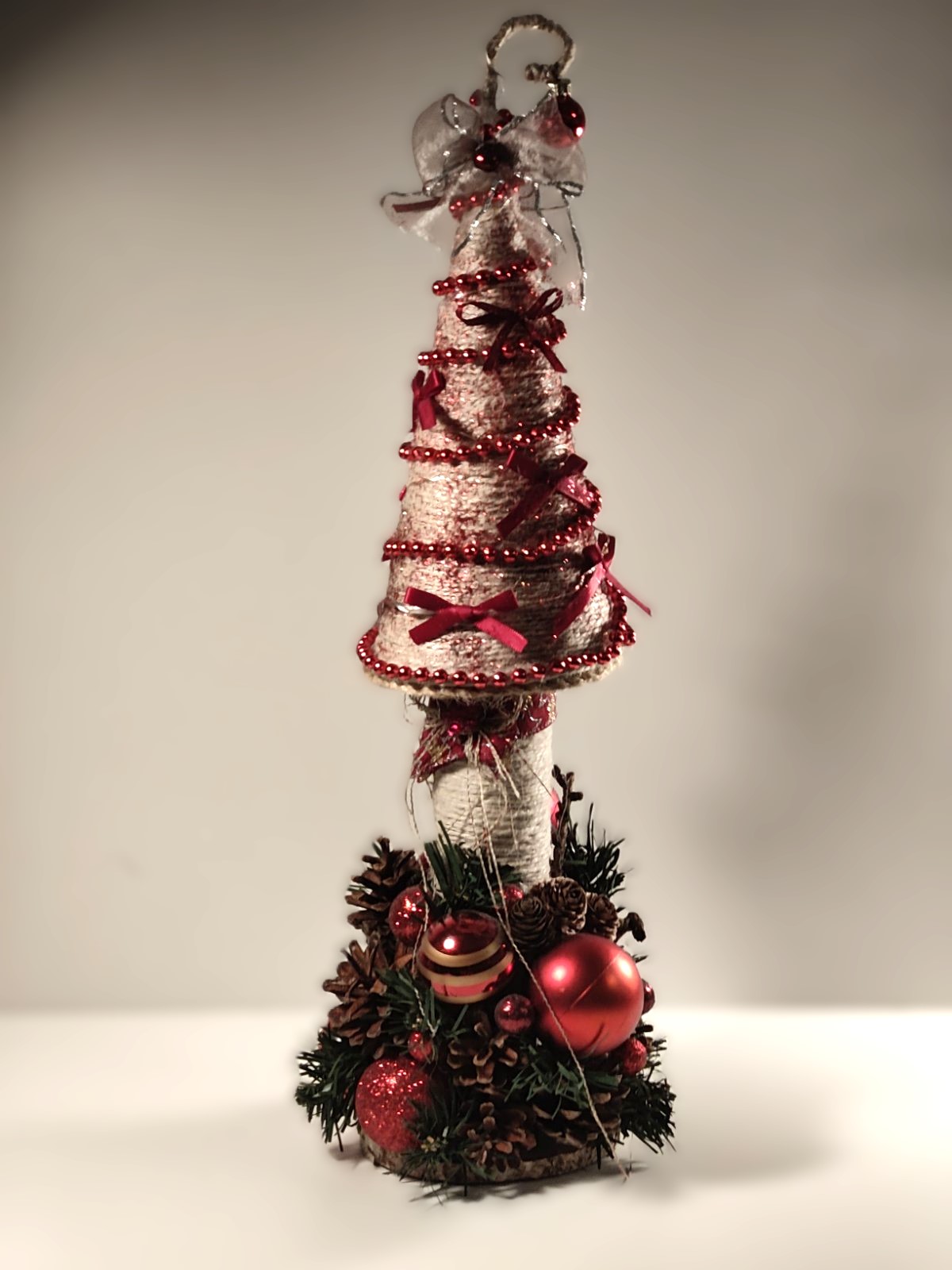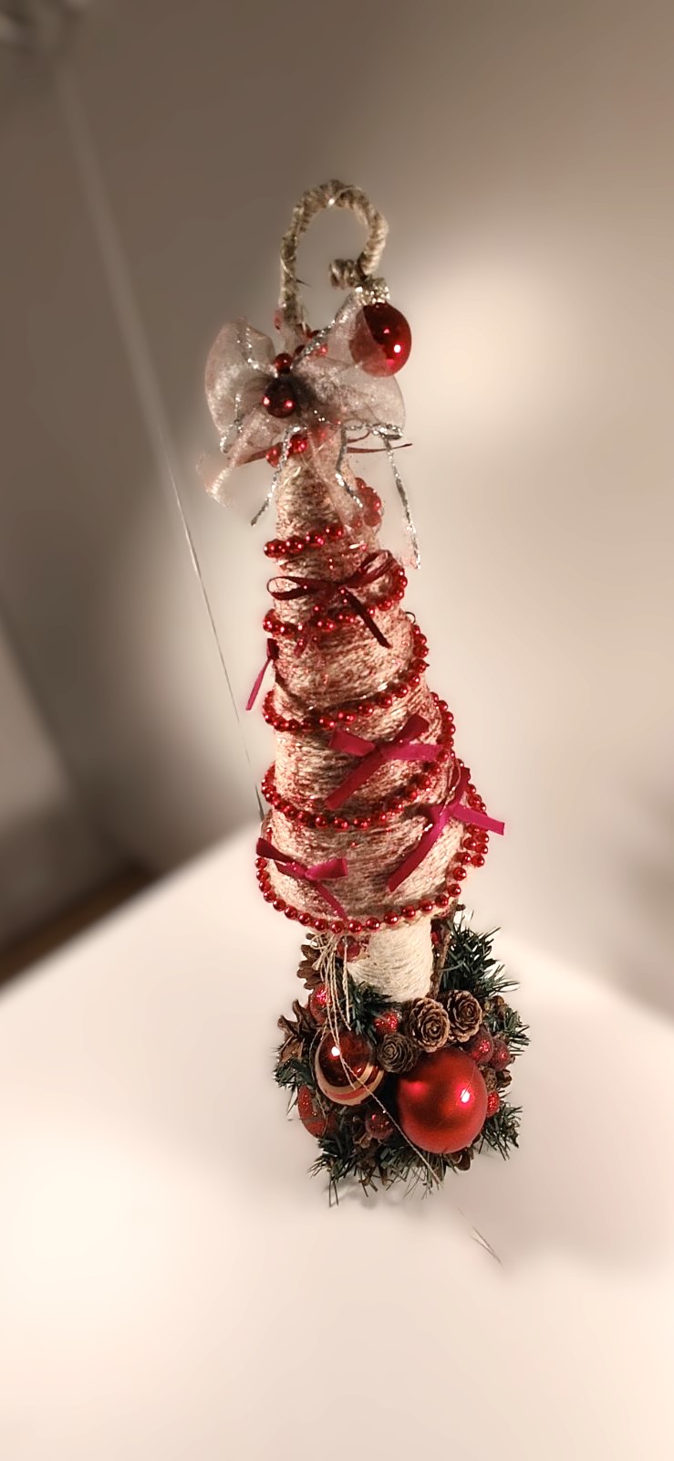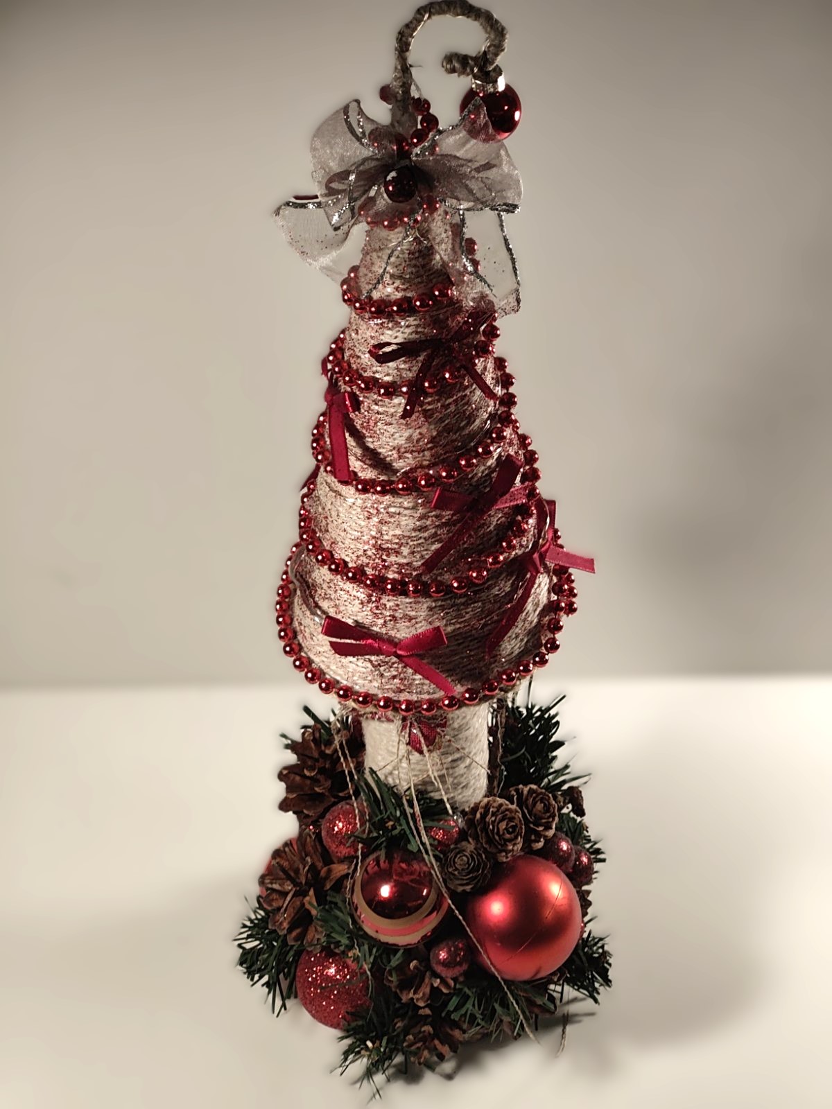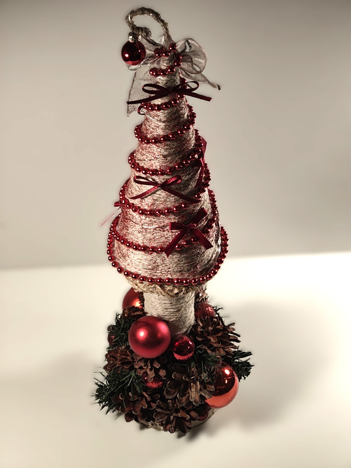 Smukt juletræ (ca. 45 cm. højt) Håndlavet med helt eget design, og helt igennem unikt. Lavede af ægte kogler og dekoreret med små julekugler. På billederne ser de ikke så smukt som i virkeligheden.