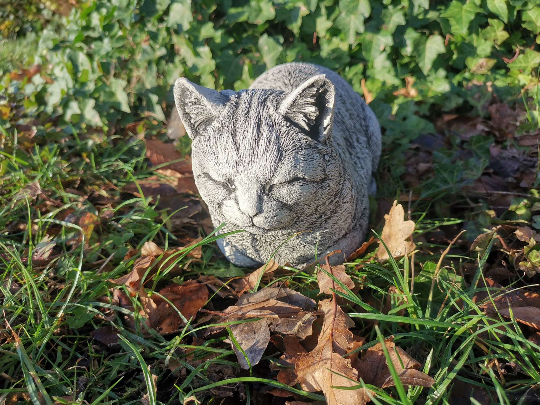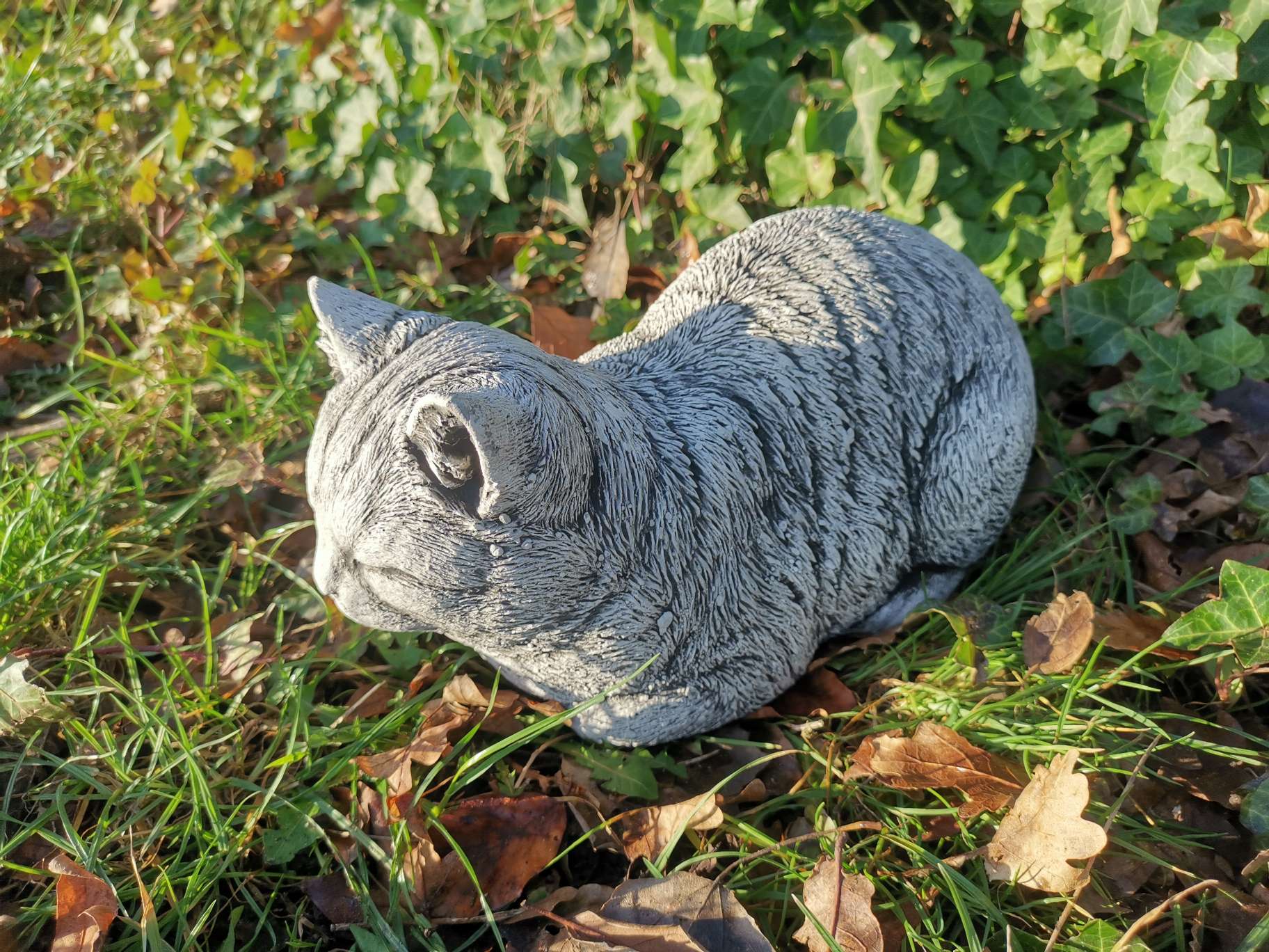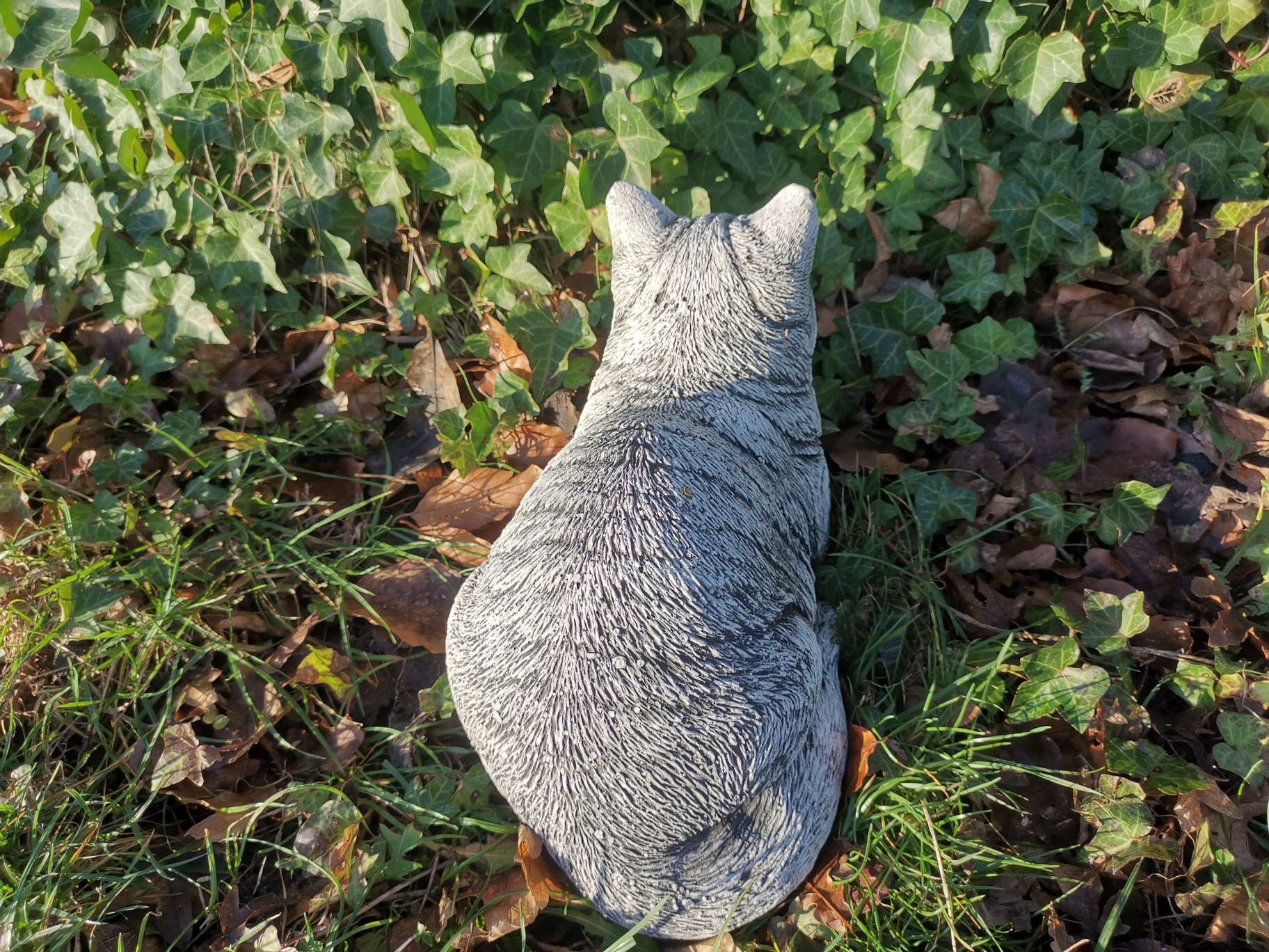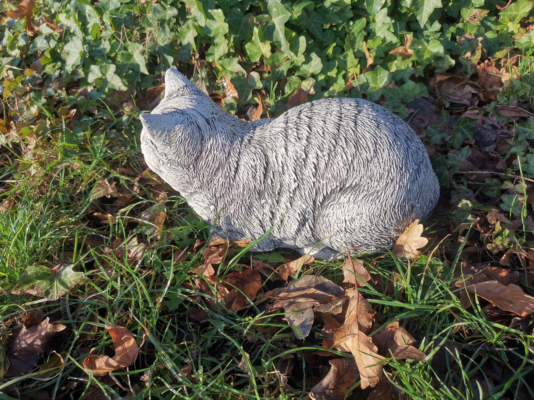 Katten er 17 cm. høj, 32 cm. lang og vejer 9 kg.